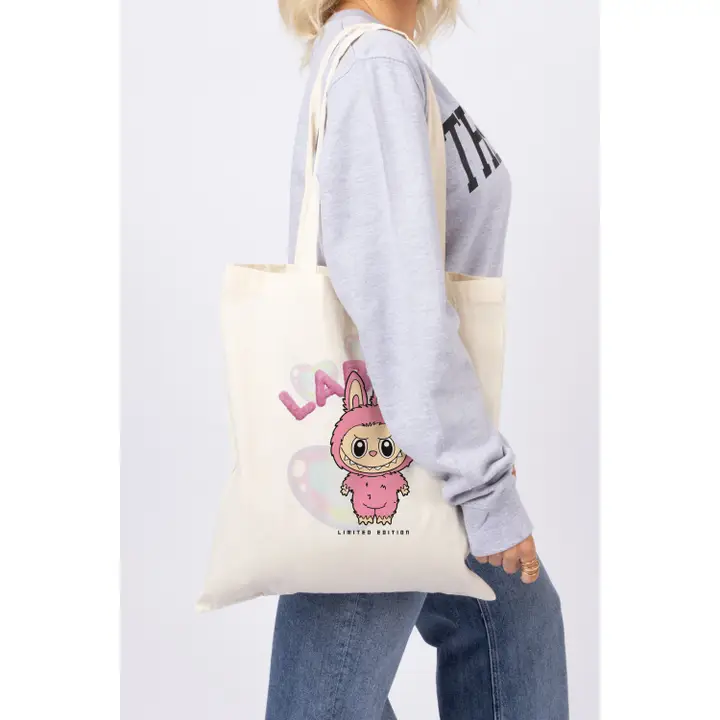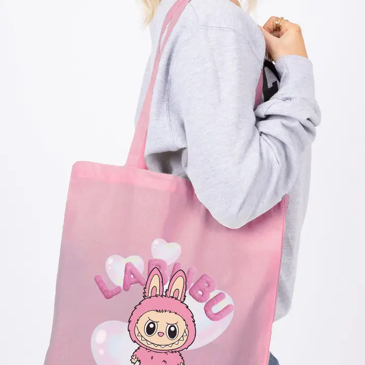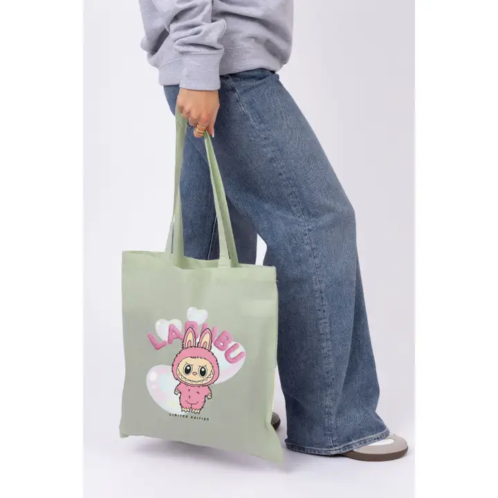 Say hello to playful charm. This tote bag brings animated energy to your Spring/Summer edit with the adorable ‘Cute Labubu’ character graphic, available in Three versatile colourways: natural,baby Pink and Pastel Mint.Made from soft, lightweight cotton, it’s sustainable, reusable, and built for everyday adventure. Featuring comfortable shoulder-length straps and a roomy interior, this style is the perfect fusion of personality and practicality — a fun, eco-conscious pick for trend-savvy customers. Minimum Order: 6 Pcs Fabric: 100% Cotton Weight: 150GSM Size: One size (Bag: 38x42cm, Handle: 70×2.5cm) Handle length 67cm. Bag Capacity 10 Litres Bag for life can be carried by hand or over the shoulder