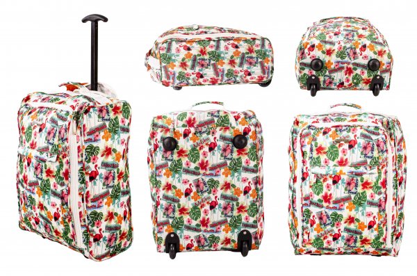 FLAMINGO-WHITE CABIN SIZE TRAVEL TROLLEY SUITCASE