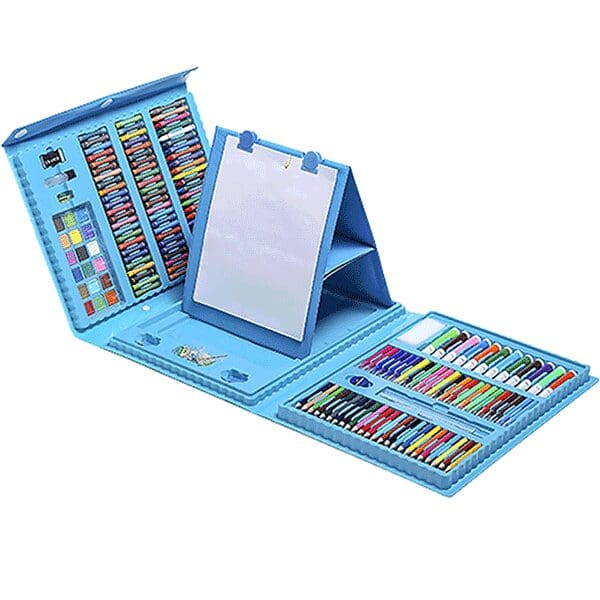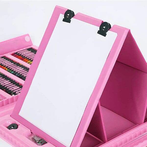 Crafted from high-quality, child-safe materials, this portable art kit is perfect for creative play at home, school, holidays, or on the go. The built-in easel allows kids to clip paper and start creating instantly, encouraging independence and artistic expression wherever inspiration strikes.