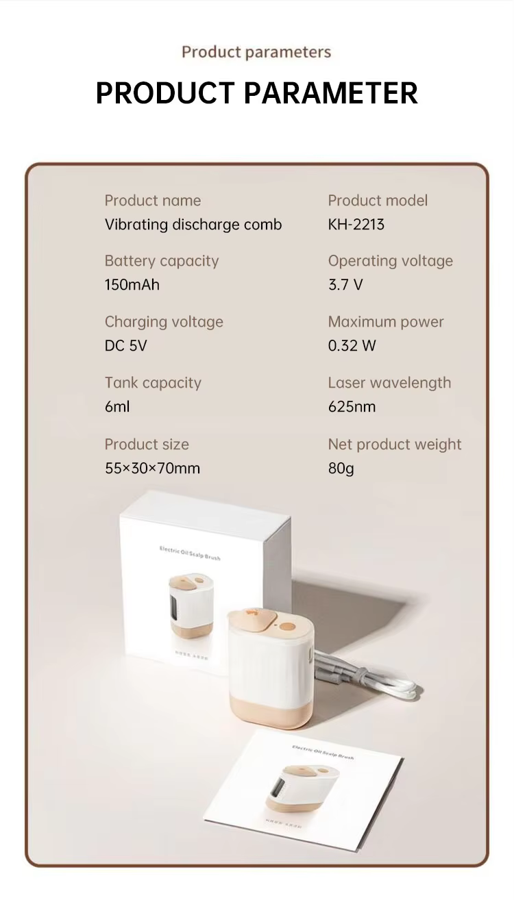This portable electric comb features high-frequency vibration for a relaxing scalp massage, helping to relieve tension while enhancing the absorption of hair growth oils or serums. With its IPX5 waterproof design, it’s safe and convenient for use at home or on the go.