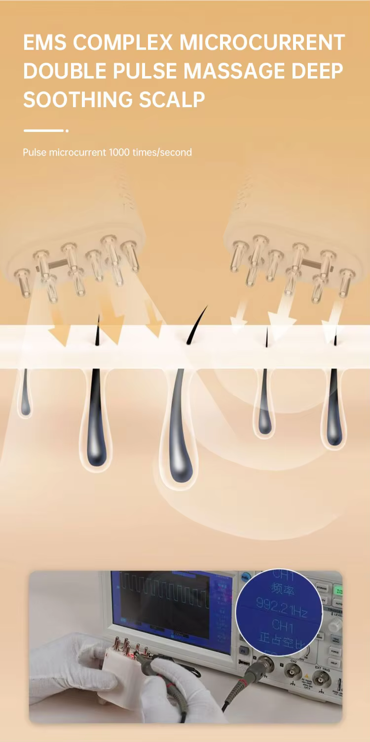 Revitalize your scalp and promote healthier hair with the Scalp Comb Hair Growth Oil Massager, designed with advanced microcurrent vibration and red light technology to stimulate hair follicles, improve blood circulation, and support natural hair growth.